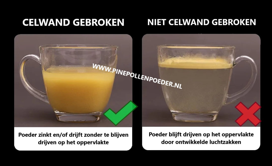 Voor een goede opnamen van de Pine Pollen in het lichaam moeten de pollen celwand gebroken zijn.